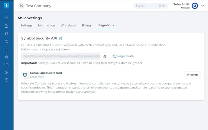 The Symbol Security API allows both MSP and Single Companies to make use of multiple endpoints at the company and partner level, such as event subscriptions (Webhooks) that notify external systems about certain events like simulations, assignments, and much more.